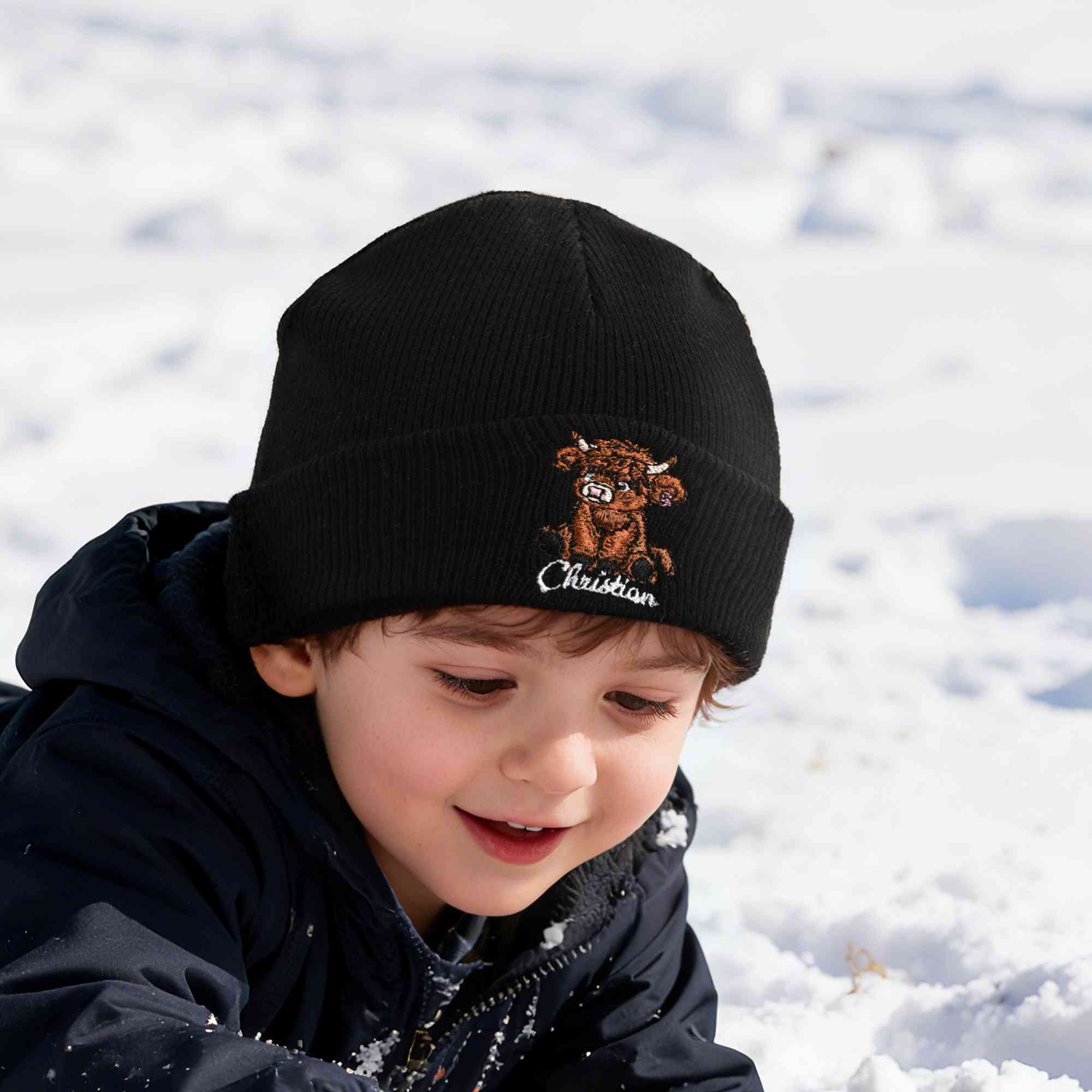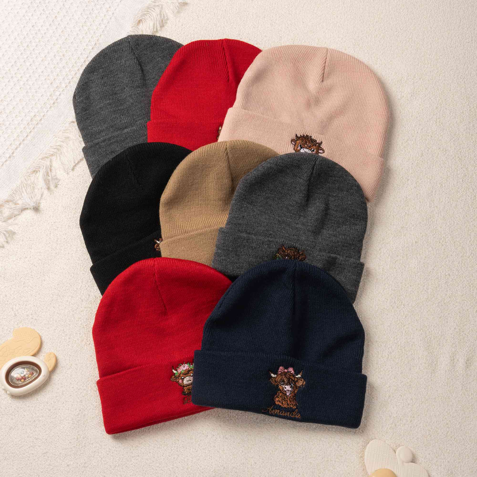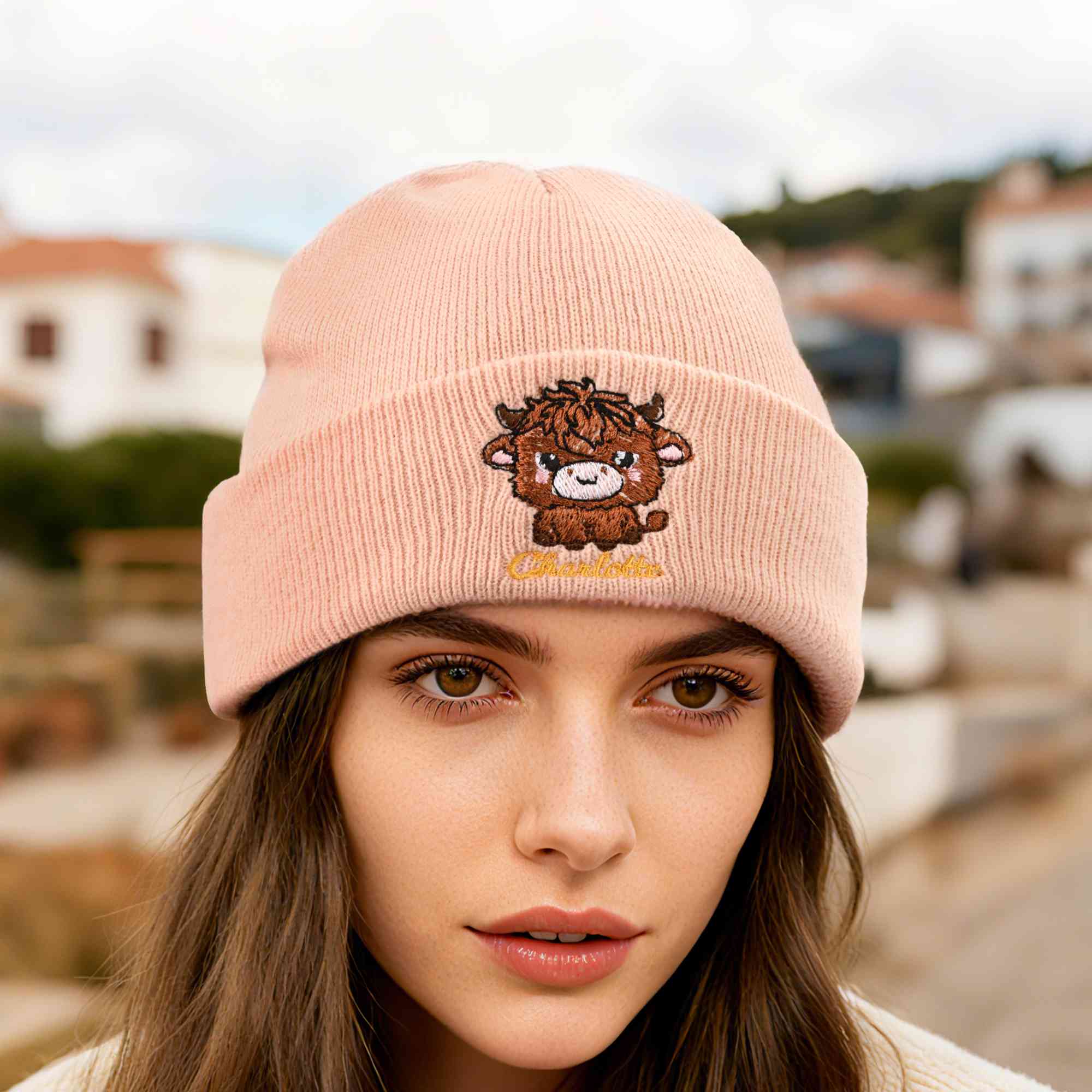 Personalized Embroidered Highland Cow Cuffed Beanie with Name |