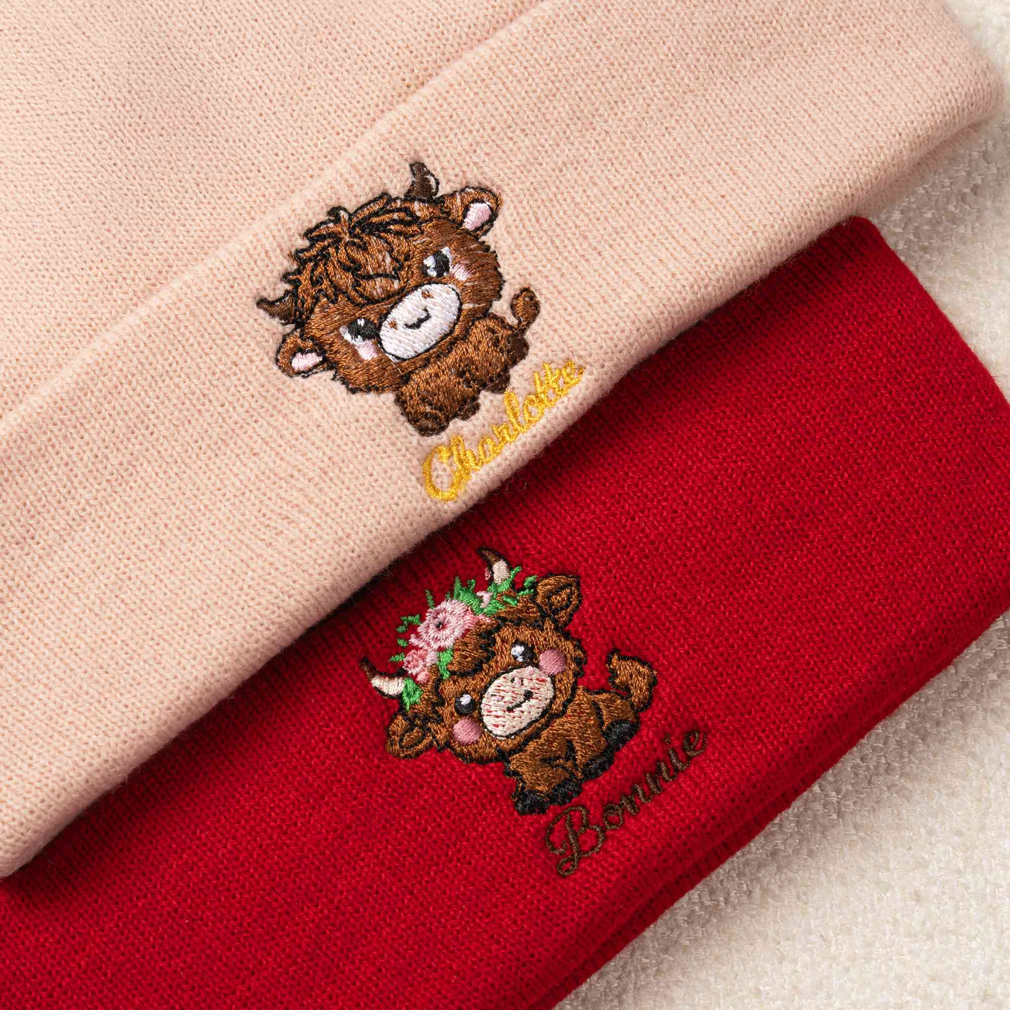 Personalized with Name - Each beanie can be customized with a name embroidered below the Highland cow design. The personal touch adds a unique and thoughtful element, turning an everyday hat into a meaningful keepsake for yourself or someone special.